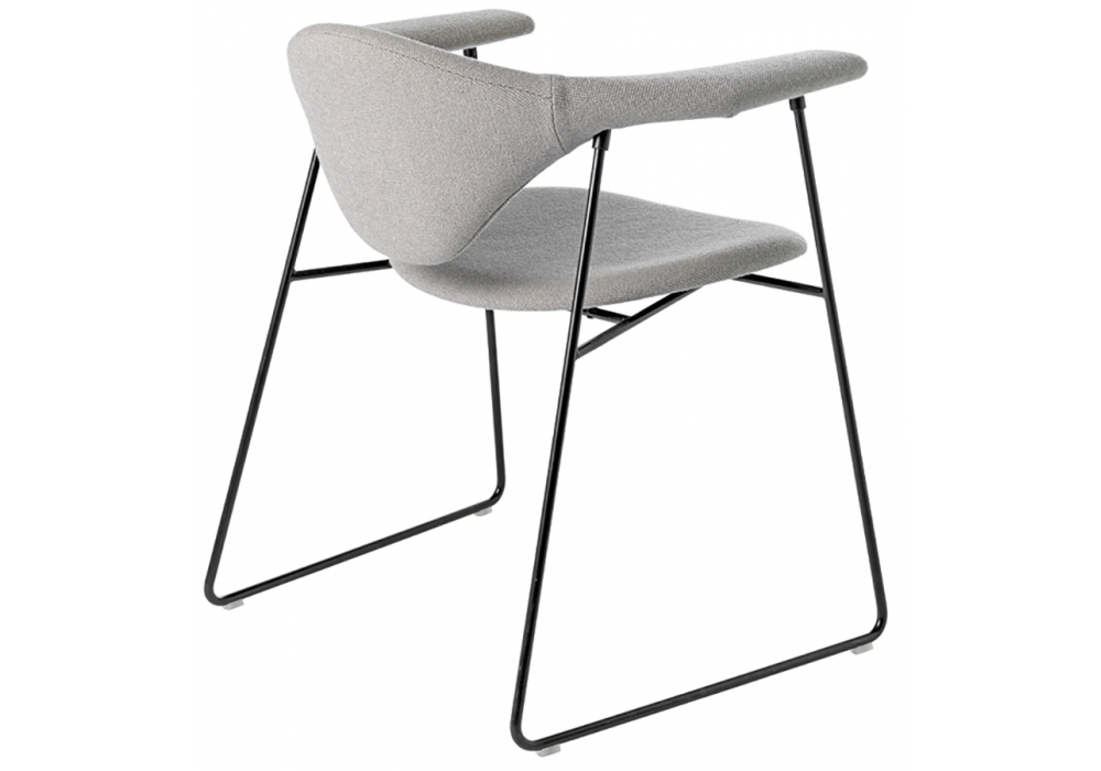 Masculo Dining conçue par GamFratesi pour Gubi est une chaise réalisée avec structure en acier et revêtement en tissu ou cuir.
