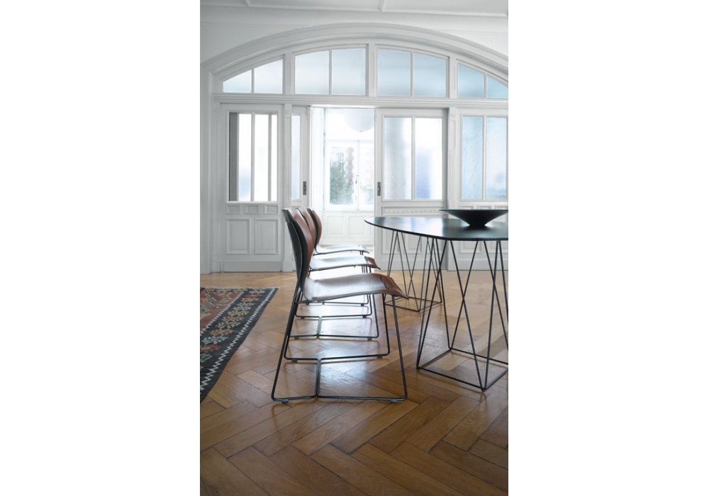 Cuoio conçue par Eoos pour Walter Knoll est une belle chaise avec base en acier peinté en poudre noir brillant. Patins synthétiques pour planchers de pierre et tapis ou patins de feutre pour les planchers en bois. La logique du minimalisme détermine le style et les matériaux de la collection Cuoio. Le cuir et l'acier, en fait, sont les composants de la surface et de la structure. Également disponible en 2 versions: avec ou sans accoudoirs.