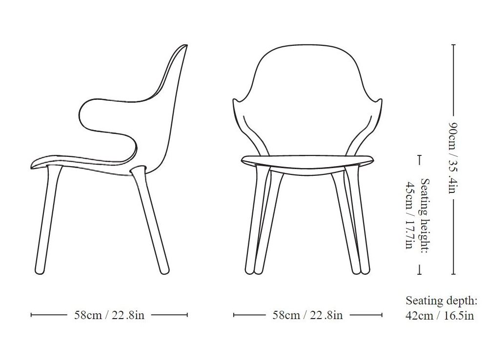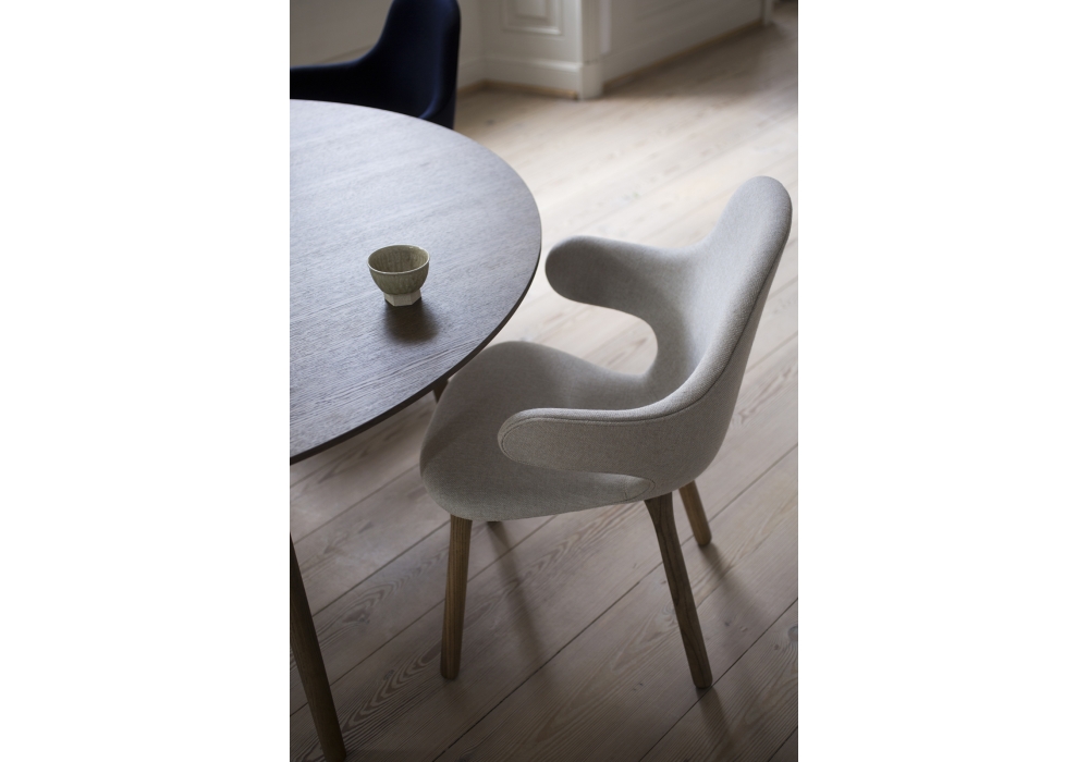 Catch JH1 conçue par Jaime Hayon pour & Tradition est une chaise réalisée en mousse PU moulée, mousse HR, pieds en chêne huilé ou laqué et revêtement en tissu ou cuir. Disponible en différentes finitions.