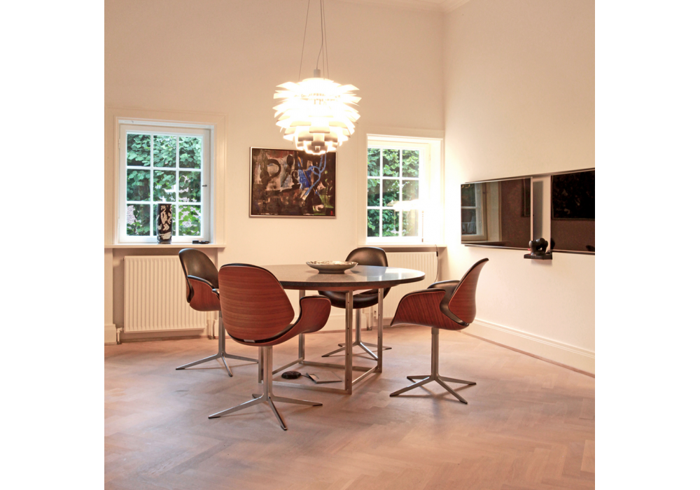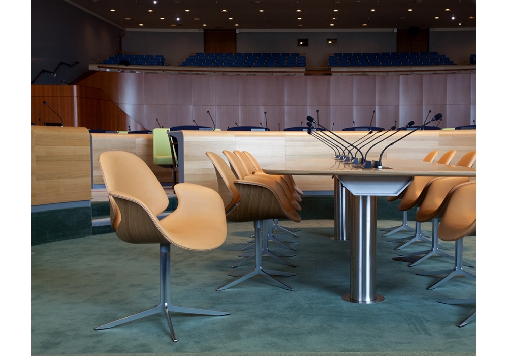 Council Chair conçue par Salto & Sigsgaard pour OneCollection est une belle chaise avec rêvetement disponible en plusieurs tissus ou cuirs et coque disponible en chêne, noyer ou entièrement tapissées. Jambes en aluminium poli avec mécanisme pivotant. La chaise passe sur le bâton de l'héritage de conception iconique Finn Juhl dans une direction sculpturale et agréable, qui fusionne la forme, la couleur et les matériaux naturels.