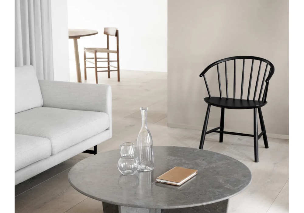 J64 Johansson conçue par Ejvind A. Johansson pour Fredericia est une chaise en bois de frêne massif avec assise en contreplaqué. Guide supérieur en bois massif cintré à la vapeur.