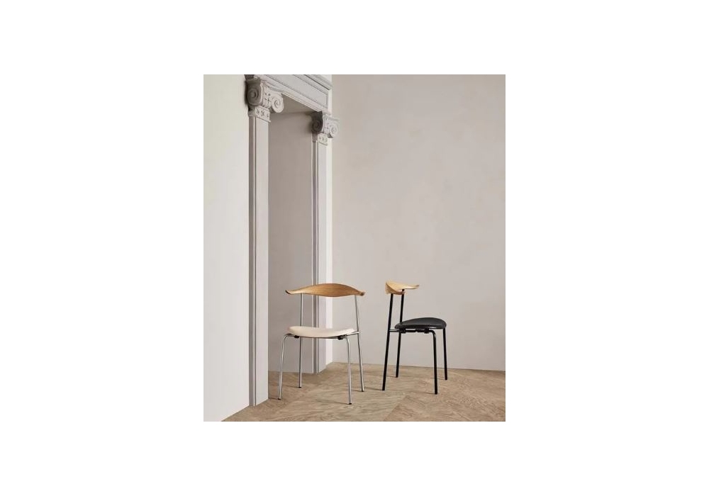 CH88P conçue par Hans J. Wegner pour Carl Hansen & Søn est une chaise sans accoudoirs réalisée avec une structure en acier inoxydable ou enduite de poudre noire. Dossier en hêtre ou en chêne dans différentes finitions. Siège rembourré avec revêtement en tissu ou en cuir.