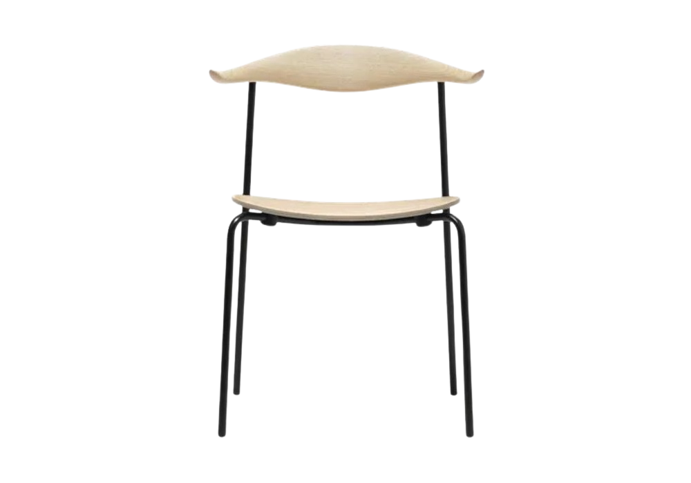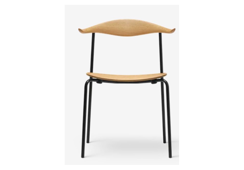 CH88T conçue par Hans J. Wegner pour Carl Hansen & Søn est une chaise empilable sans accoudoirs réalisée avec une structure en acier inoxydable ou enduit de poudre noire. Dossier et assise en hêtre ou chêne disponibles en différentes finitions.
