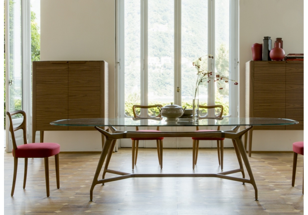 Noemi conçue par Marelli & Molteni pour Porada est une chaise avec structure en noyer canaletta massif. Siège avec rêvetement disponible ens différents types de tissu et de cuir.