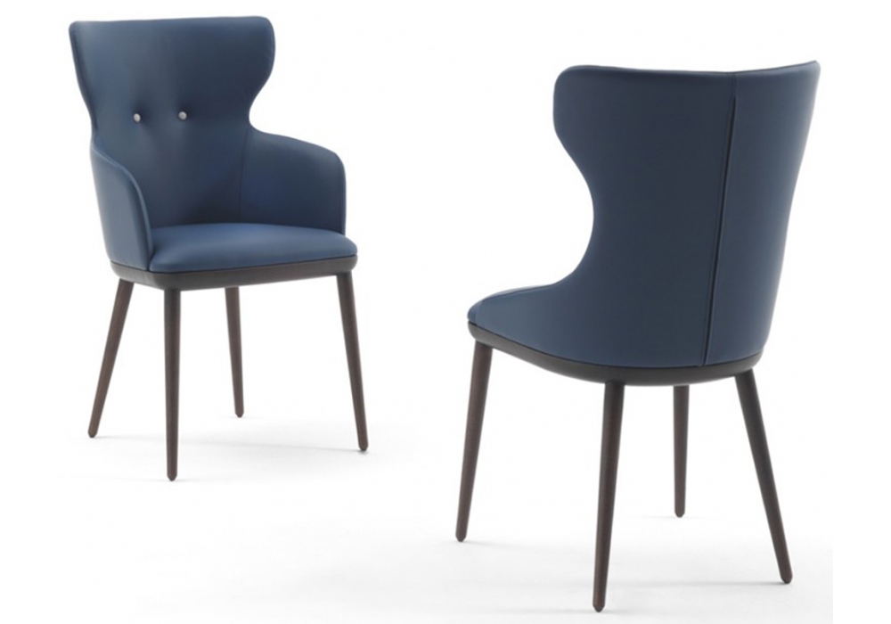 Andy conçue par Carlo Ballabio pour Porada est une chaise avec structure en noyer canaletta massif ou frêne en différentes finitions et revêtement en cuir ou en tissu. Disponible avec ou sans accoudoirs.