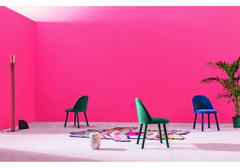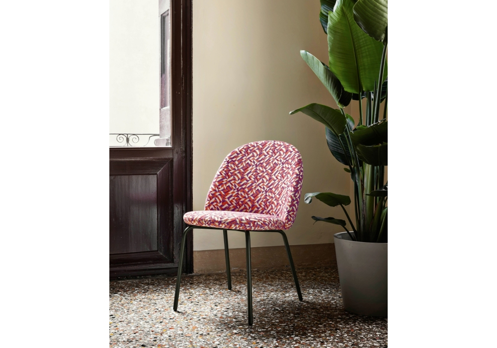 Iola conçue par E-ggs pour Miniforms est une chaise avec base en métal, coque en polyuréthane flexible. Rembourrage en tissu. Disponible en différentes finitions et dans la version avec ou sans accoudoirs.