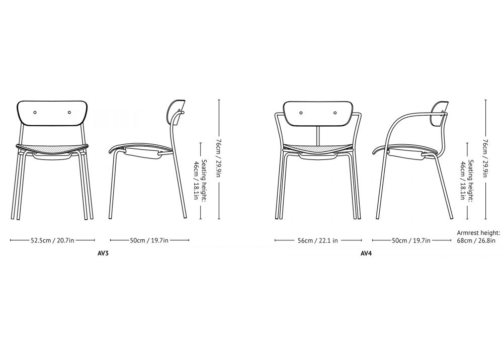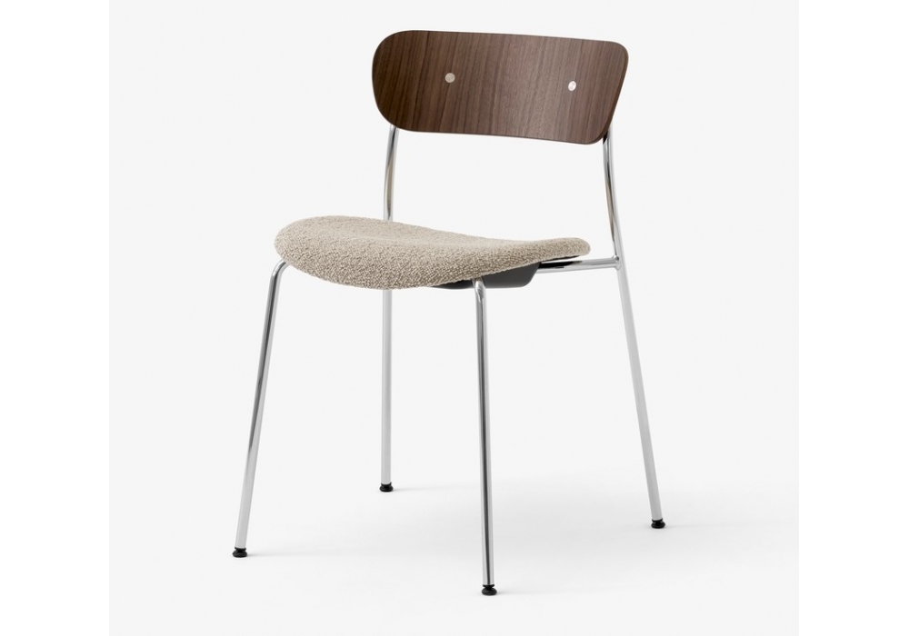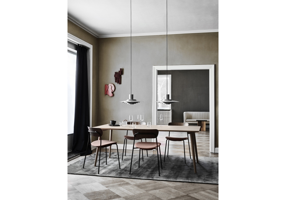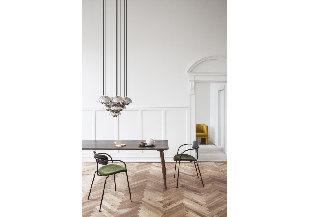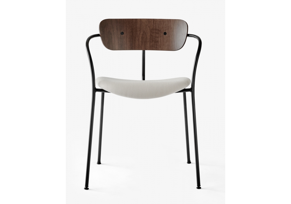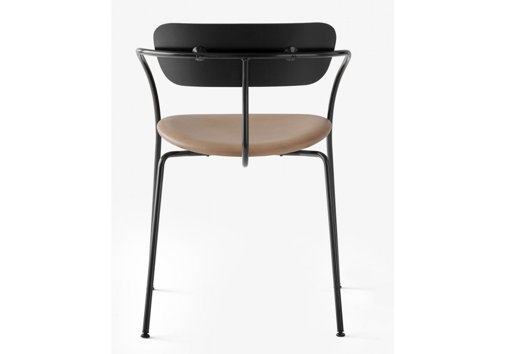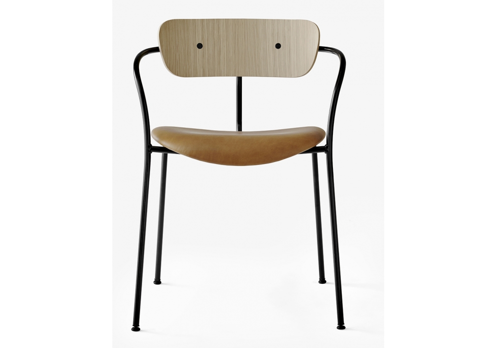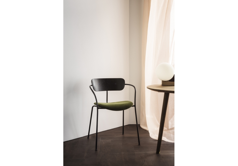 Pavilion conçue par Anderssen & Voll pour &Tradition est une chaise avec ou sans accoudoirs, réalisée avec des tubes d'acier pliés et un placage plié sous pression. Dossier en placage fini avec une laque PU et assise rembourrée avec revêtement en tissu ou en cuir. Disponible en différentes finitions.