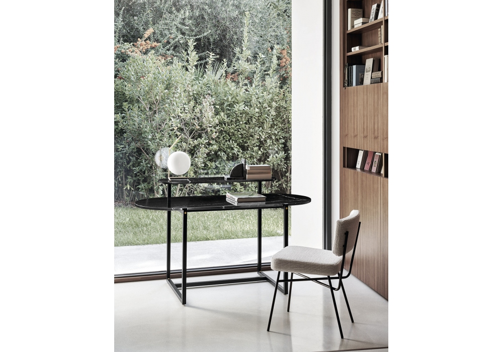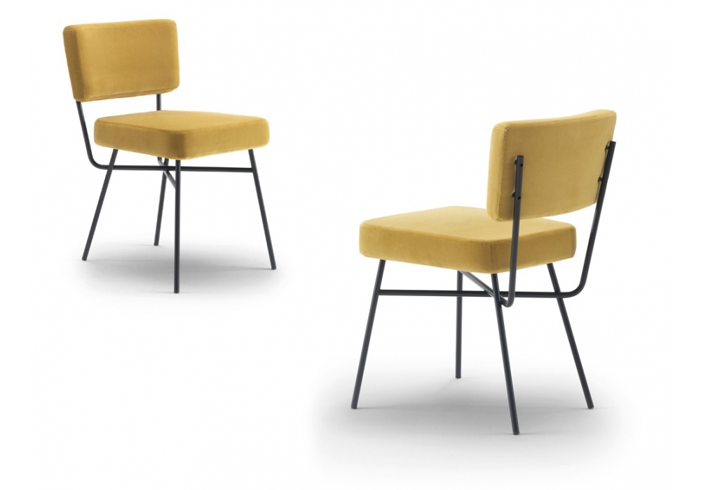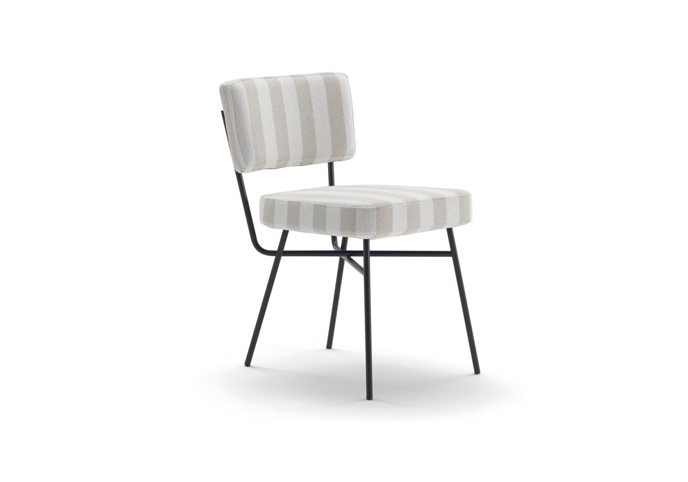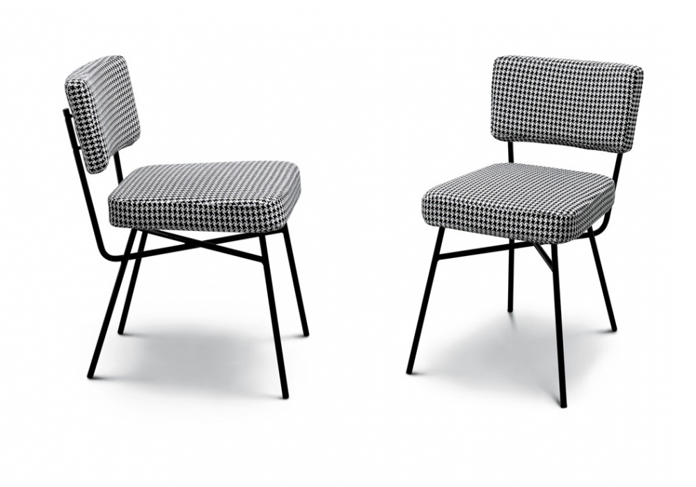 Elettra conçue par B.B.P.R pour Arflex est une chaise avec structure en métal laqué noir. Revêtement en tissu déhoussable ou cuir non déhoussable.
