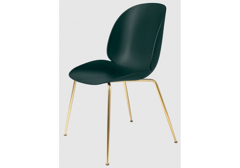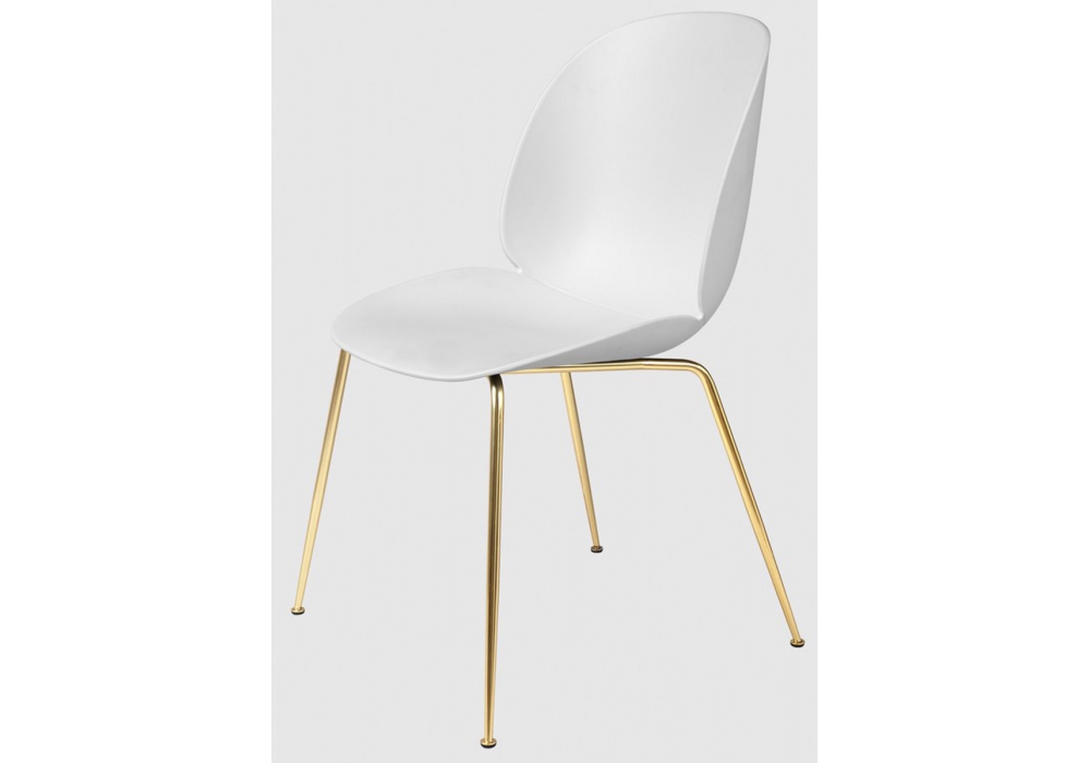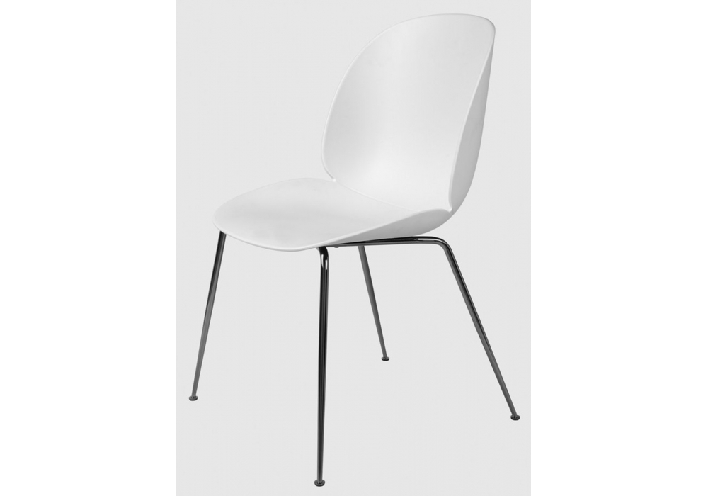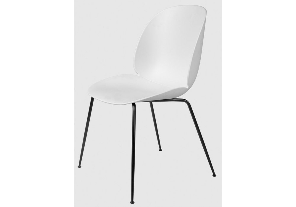 Beetle Dining conçue par GamFratesi pour Gubi est une chaise avec base conique en acier peint par poudrage. Coque en polypropylène disponible en différentes finitions.