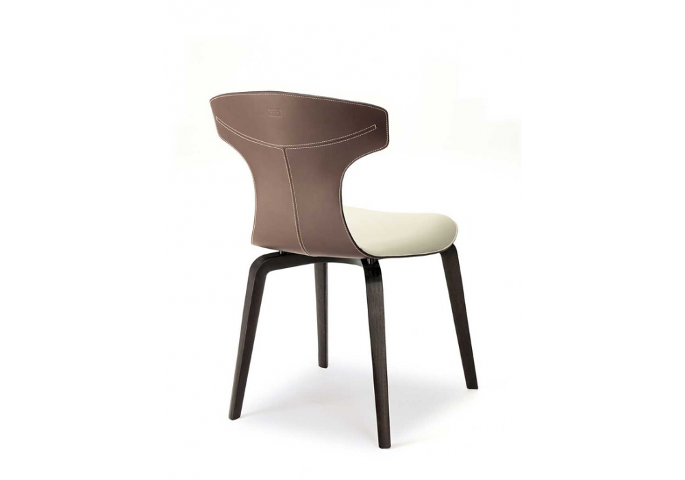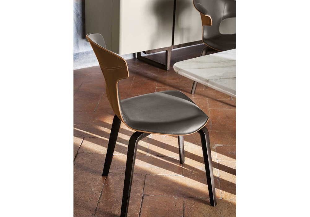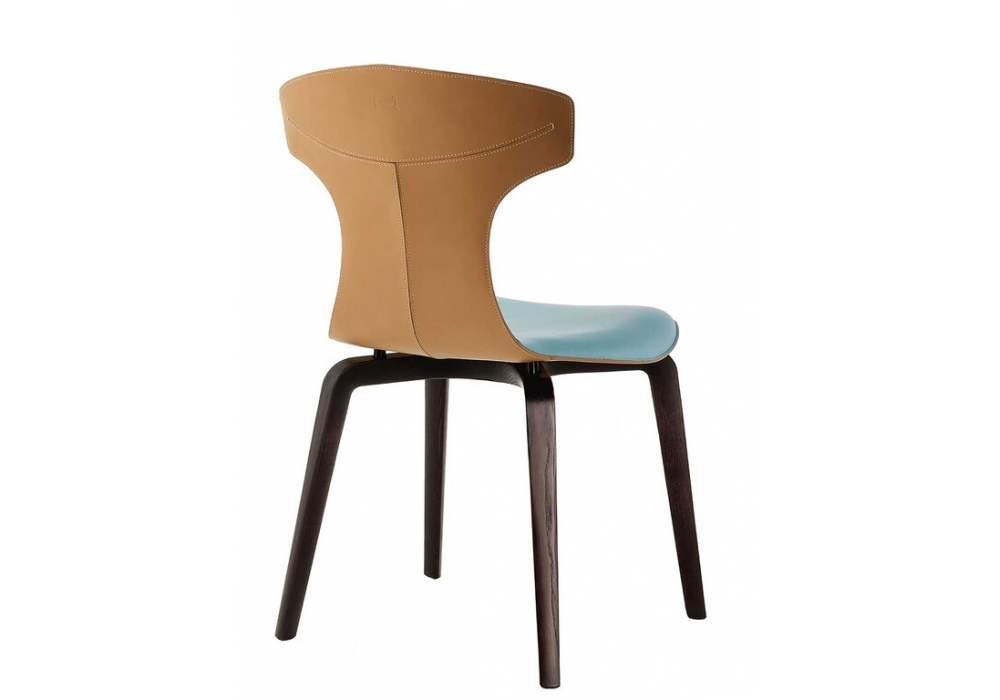 Montera, conçue par Roberto Lazzeroni pour Poltrona Frau, est une chaise de salle à manger avec une coque en polyuréthane rigide moulé, un rembourrage en mousse de polyuréthane et un revêtement en cuir Pelle Frau®. Disponible en deux versions : coque en cuir sellerie et revêtement intérieur en cuir ou entièrement en cuir, uni ou bicolore. Le cuir et le cuir sellerie, avec des bords nets, sont cousus ensemble avec des fils contrastés. La version tout cuir présente des coutures ton sur ton. Pieds en frêne massif ou en acier.
