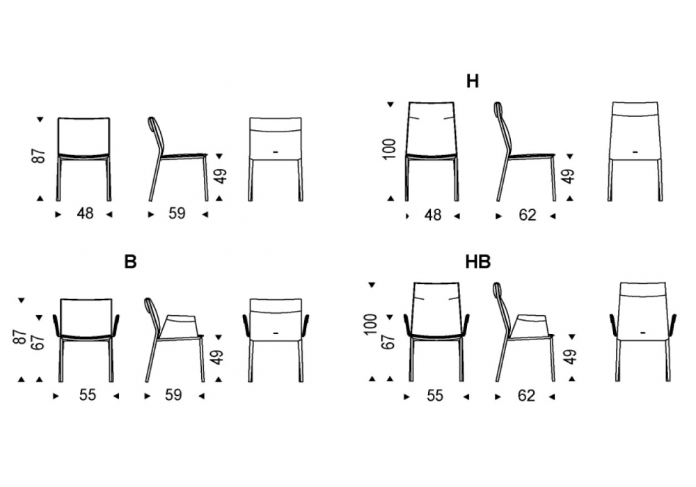 | Dimensions | L 48 x W 59 x H 87 cm; B: L 55 x W 59 x H 87 cm; H: L 48 x W 62 x H 100 cm; HB: L 55 x W 62 x H 100 cm |