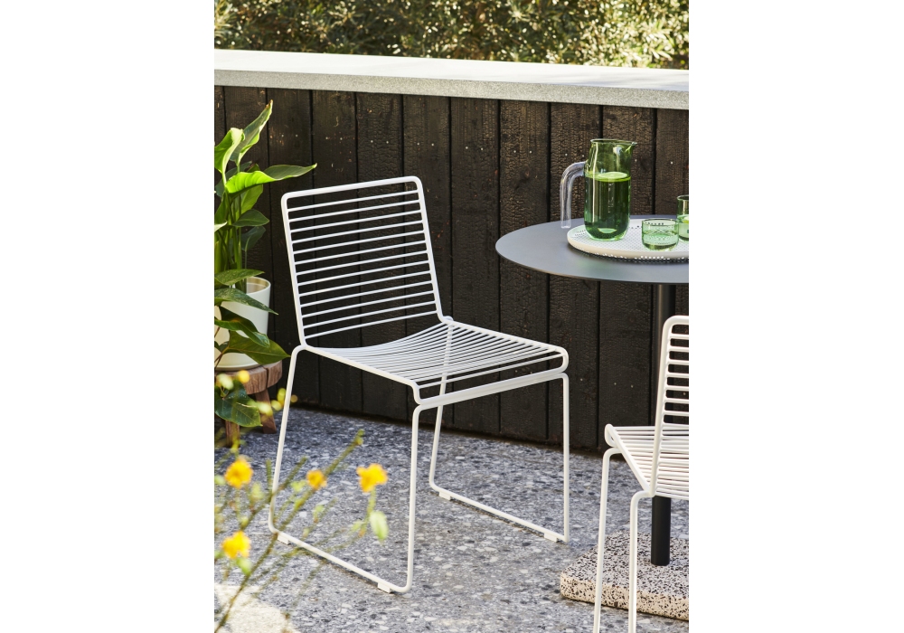 Hee conçue par Hee Welling & Hay pour Hay est une chaise empilable également adaptée à une utilisation en extérieur en acier enduit de poudre. Les chaises peuvent être reliées entre elles en rangées pour une utilisation en conférence. Empilable jusqu'à 15 pièces. Disponible en différentes finitions.