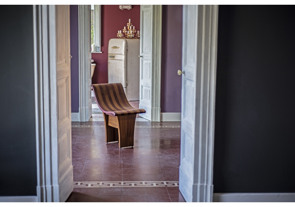 Karékla par Salvatore Longo pour Ornythos est une chaise en bois. Le siège est formé en alternant deux essences de bois iroko et violet.