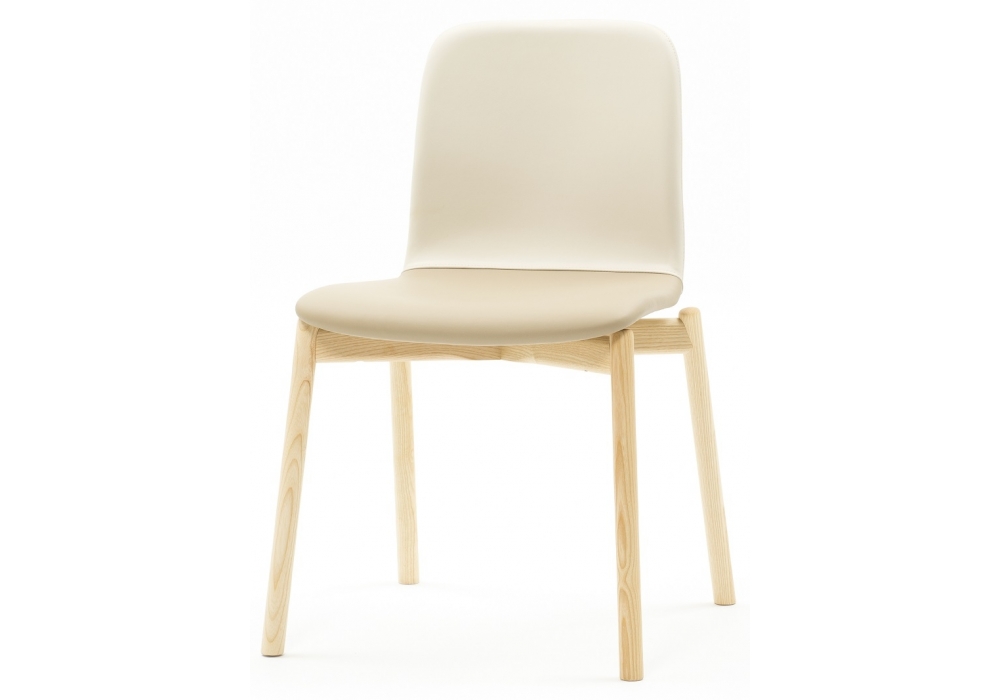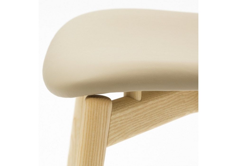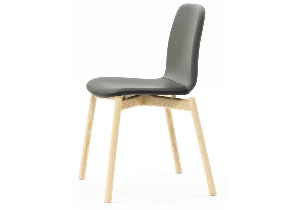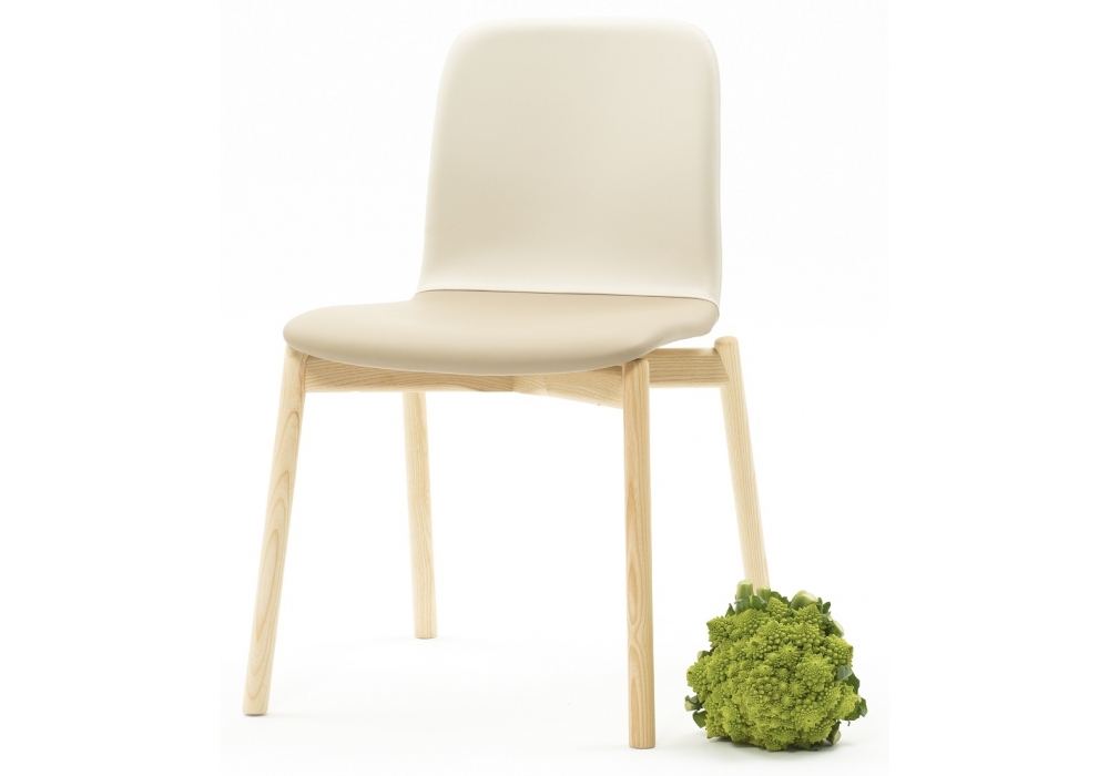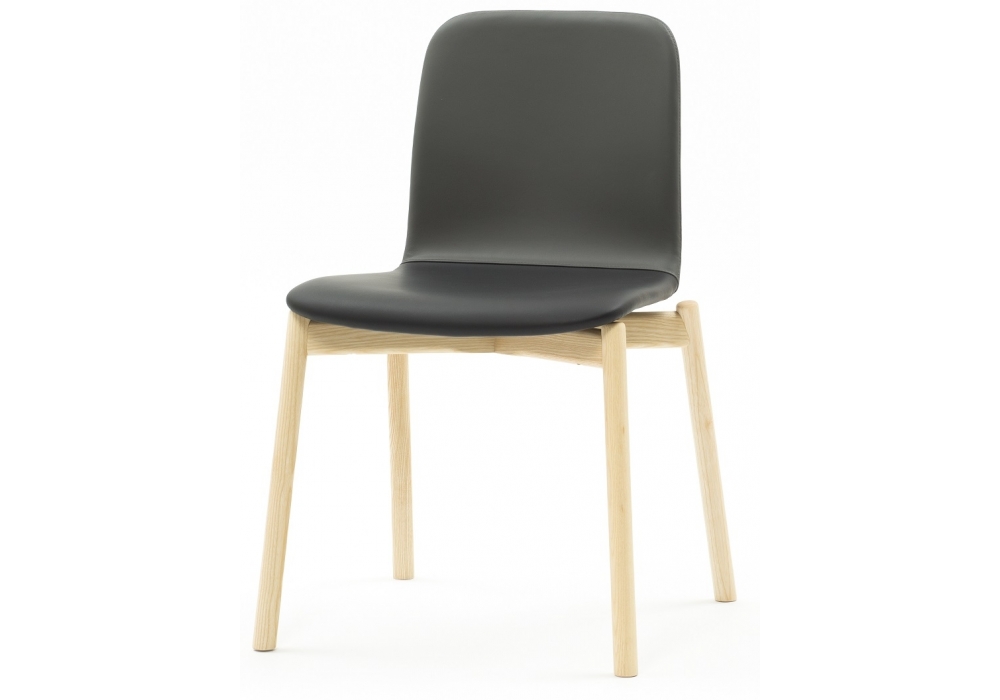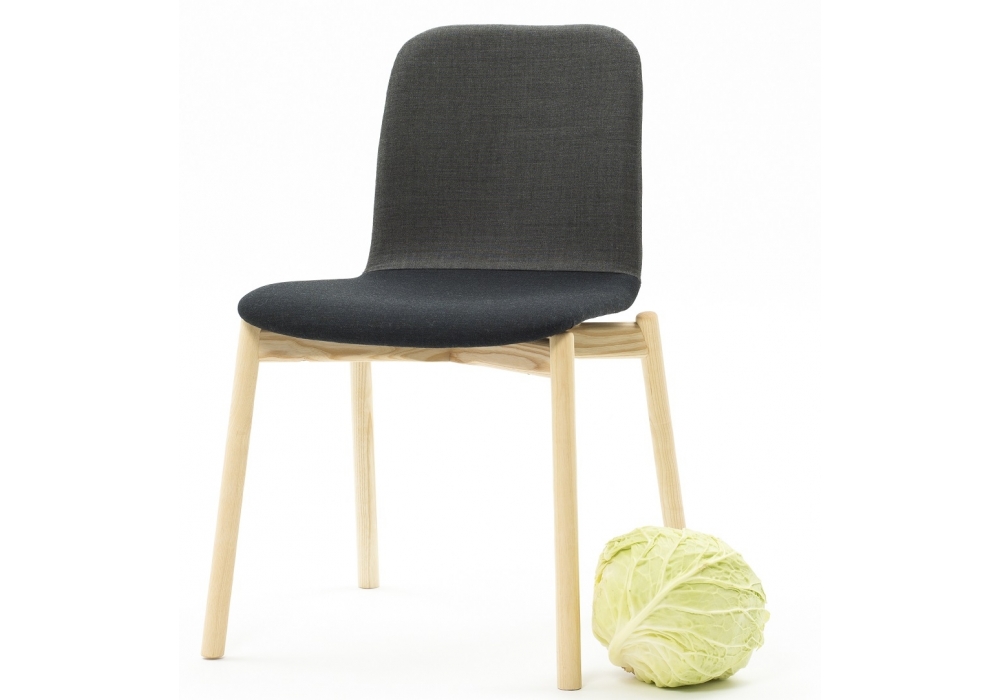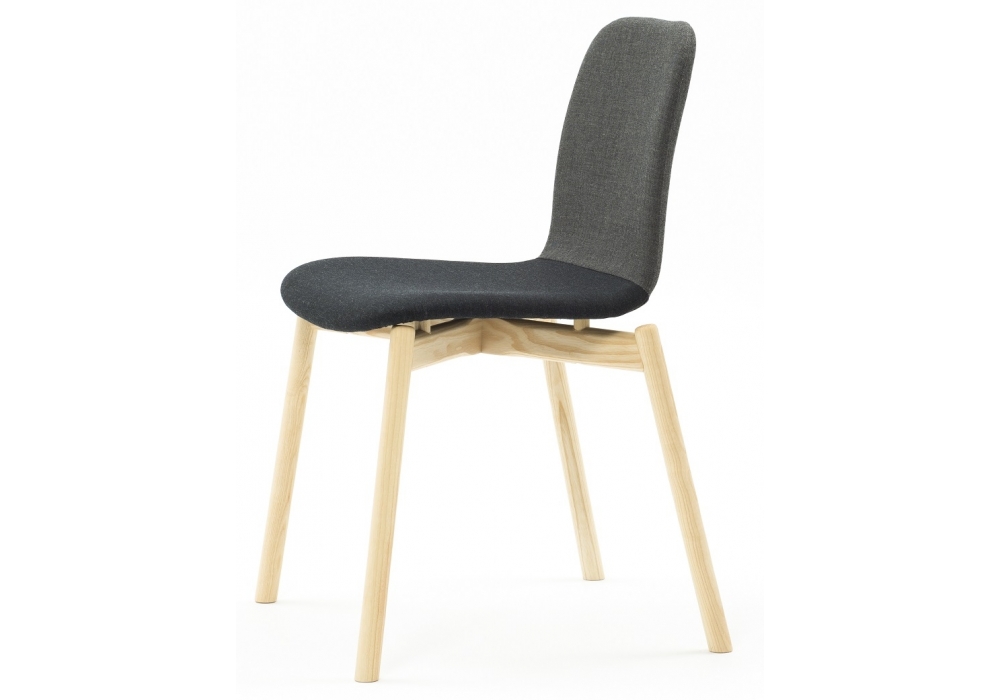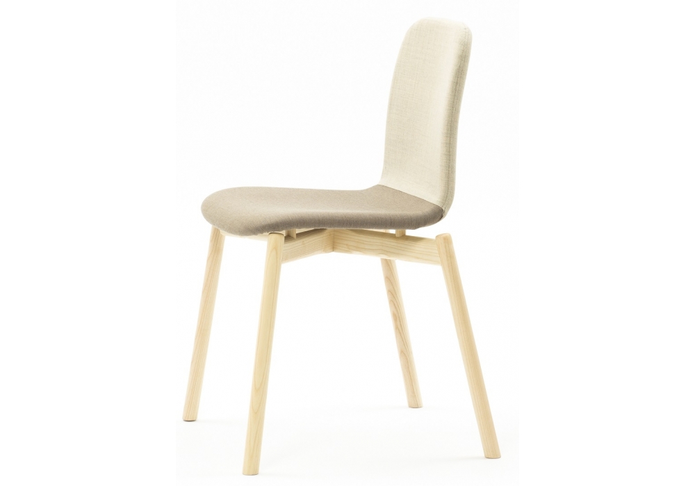 Two Tone conçue par Ichiro Iwasaki pour Discipline est une chaise réalisée en frêne avec une finition teintée naturelle ou noire. Assise et dossier rembourrés avec revêtement en tissu ou en cuir dans la version unicolore ou bicolore.