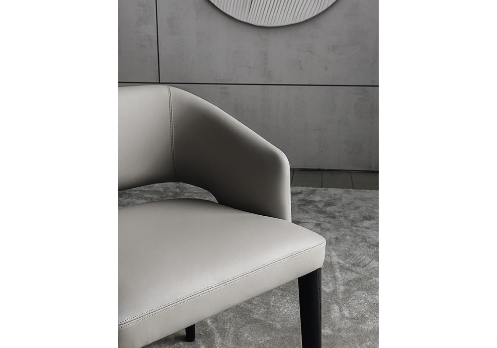 Elsa conçue par Castello Lagravinese Studio pour Casamilano est une chaise avec structure en hêtre massif et contreplaqué courbé. Rembourrage en mousse de polyuréthane. Pieds en chêne massif teinté. Couverture fixe en tissu ou cuir. Disponible en version lisse ou avec dossier extérieur matelassé.