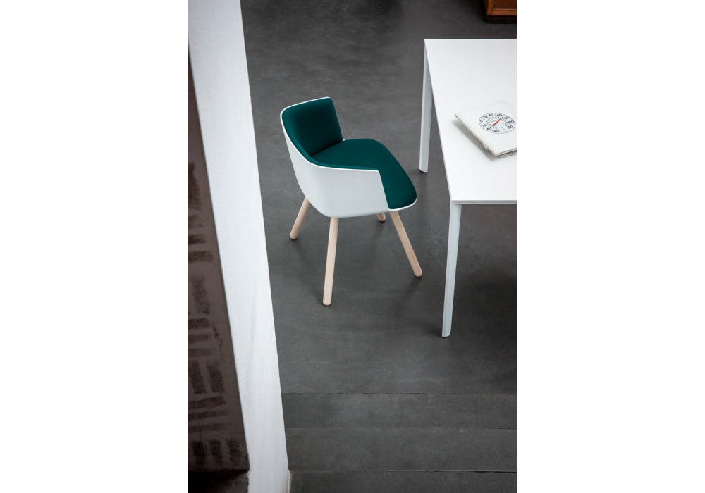Cut conçu par Francesco Rota pour Lapalma est une chaise en deux finitions. Disponible avec coque en polyuréthane rigide blanc ou noir et housse intérieure en tissu ou en cuir.