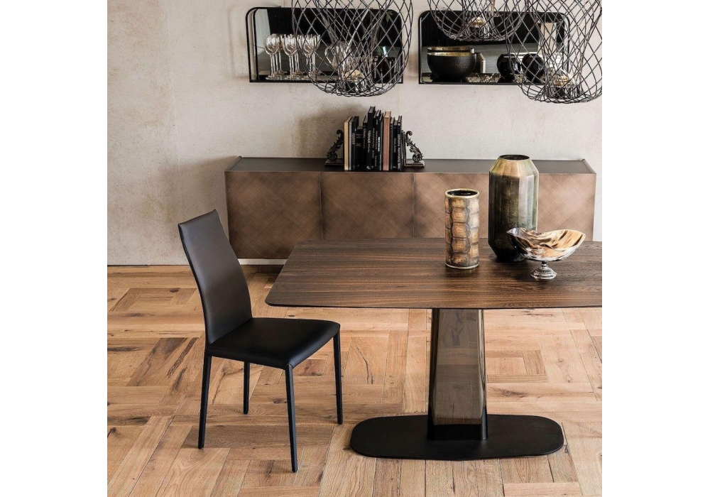 Kay conçue par Paolo Cattelan pour Cattelan Italia est une chaise rembourrée avec structure en acier et entièrement recouverte de cuir, éco-cuir ou tissu.