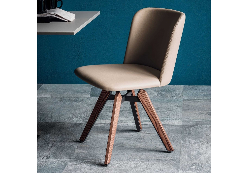 Mulan conçue par Studio cronos pour Cattelan Italia est une chaise pivotante avec structure en acier, pieds en frêne et revêtement d'assise et de dossier en cuir, éco-cuir ou tissu. Disponible en 2 modèles.