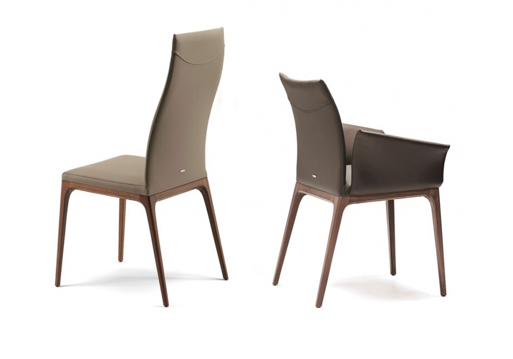 Arcadia conçue par Paolo Cattelan pour Cattelan Italia est une chaise avec base en hêtre et revêtement d'assise et de dossier en cuir, éco-cuir ou tissu. Disponible en 3 modèles.