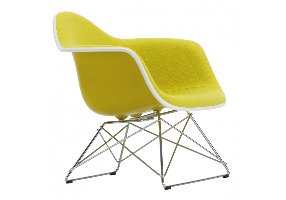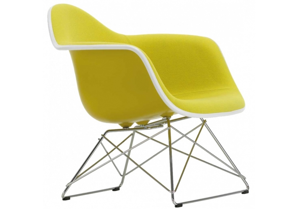 Eames Plastic Armchair LAR conçu par Charles et Ray Eames pour Vitra est un fauteuil rembourré de la collection LAR avec coque en polypropylène disponible en différentes finitions et rembourrage en tissu. Base avec fils en acier avec montants croisés en différentes finitions.