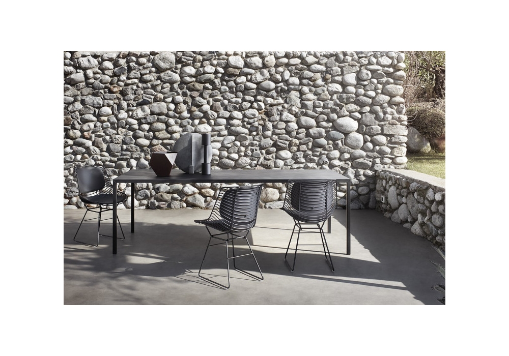Flow Filo conçue par Jean Marie Massaud pour MDF Italia est une chaise avec structure portante en fil d'acier, avec piètement luge, disponible en différentes finitions. La version peinte en bronze mat ou en nickel noir convient également à une utilisation en extérieur. Upon request, it is possible to add pads for the seat and backrest, in various colours.