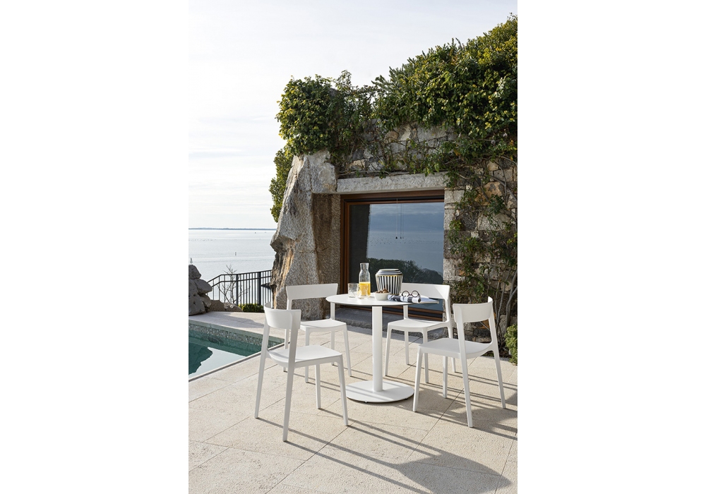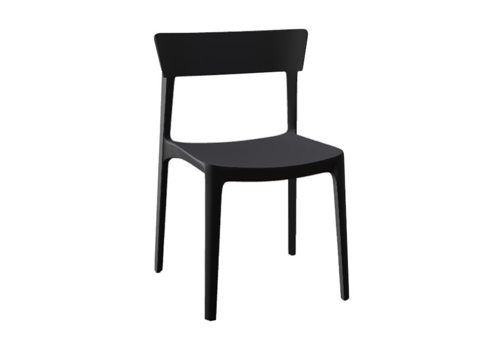 Skin conçue par Archirivolto pour Calligaris est une chaise réalisée en polypropylène couleur noir mat, aussi adaptée pour une utilisation en extérieur.