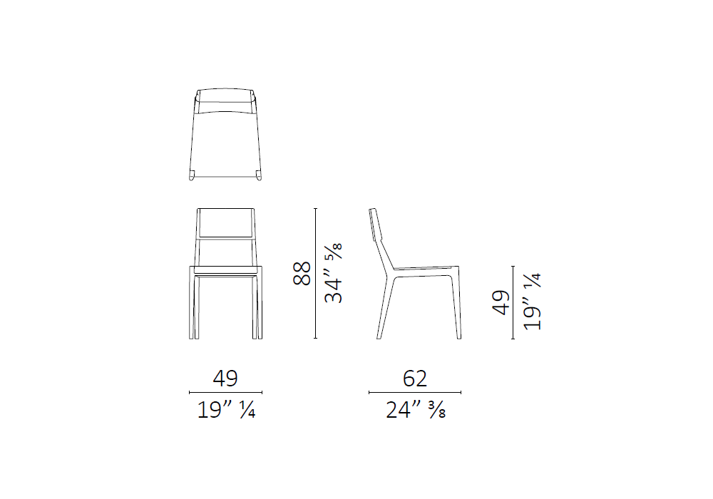 Alina conçue par Giuseppe Casarosa pour Ceccotti Collezioni est une chaise en noyer américain massif ou en frêne. Assise et dossier en contreplaqué de peuplier rembourré. Disponible en différentes finitions de couverture.