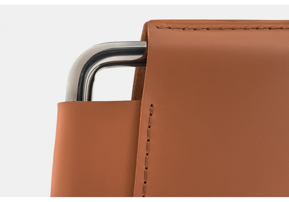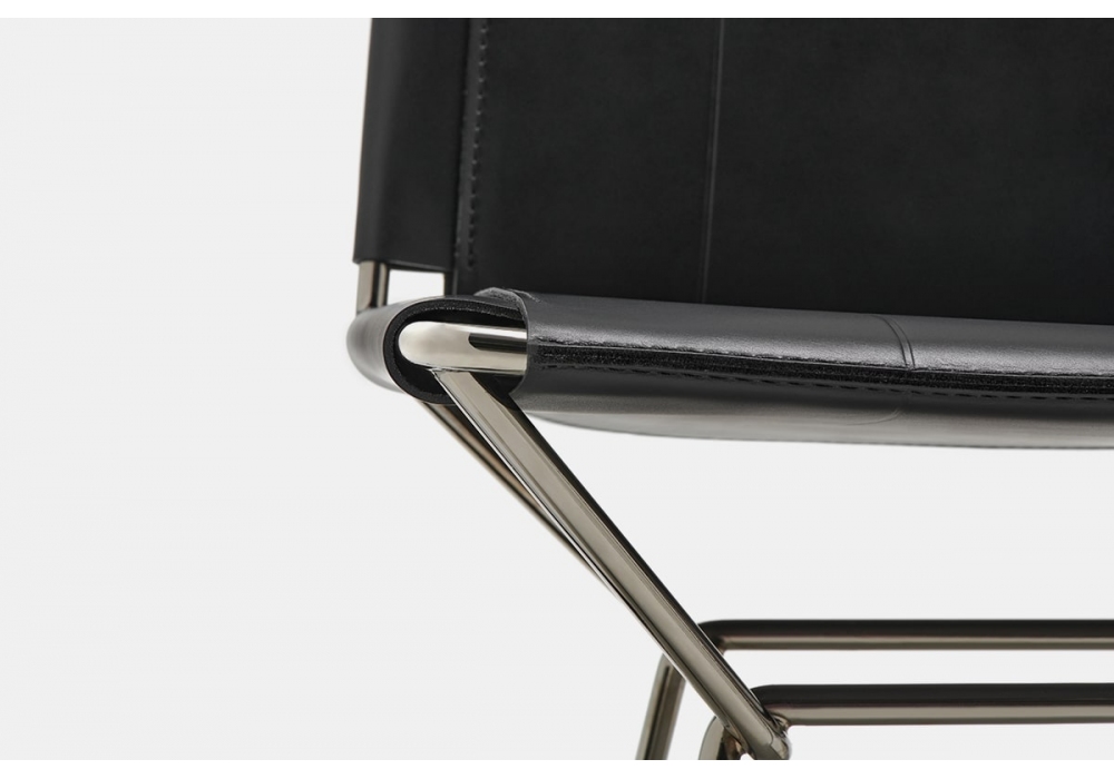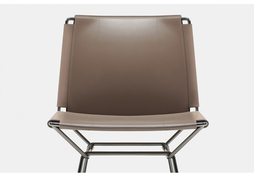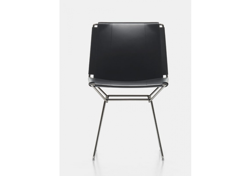 Neil Leather Chair conçue par Jean Marie Massaud pour MDF Italia est une chaise avec structure portante en acier finition chrome noir et coque en cuir en différentes finitions.