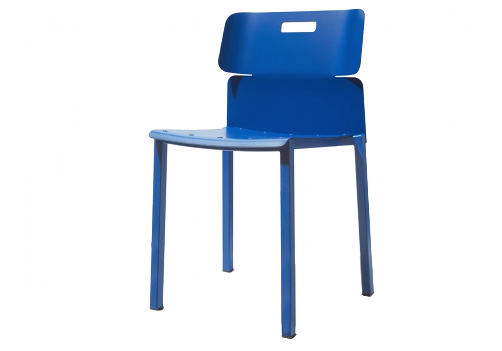Meta, conçu par Giulio Iacchetti pour InternoItaliano, est une chaise empilable en aluminium peint à la poudre époxy, pour l'intérieur et l'extérieur, entièrement faite à la main et raffinée avec des clous et des rivets métalliques. Basée sur le processus de fabrication de la carrosserie des voitures de course dans le passé.