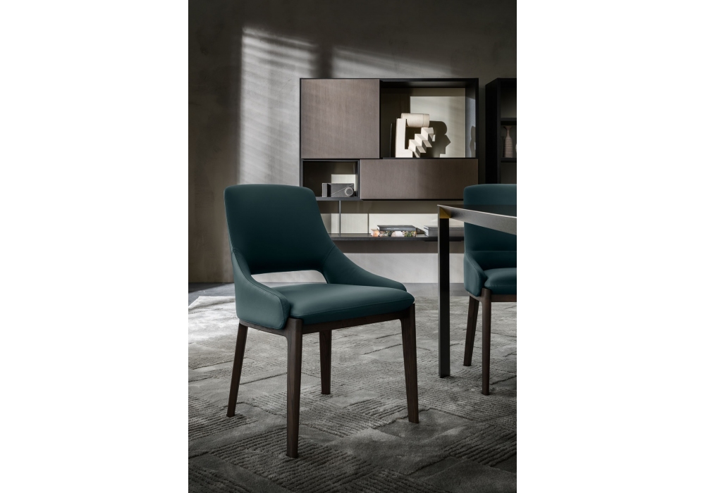 Devon conçue par Rodolfo Dordoni pour Molteni&C est une chaise réalisée avec un rembourrage en tissu ou cuir et une base en bois massif. Disponible en différentes finitions et 2 versions.