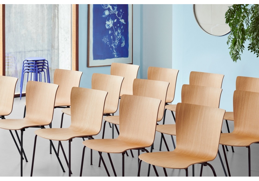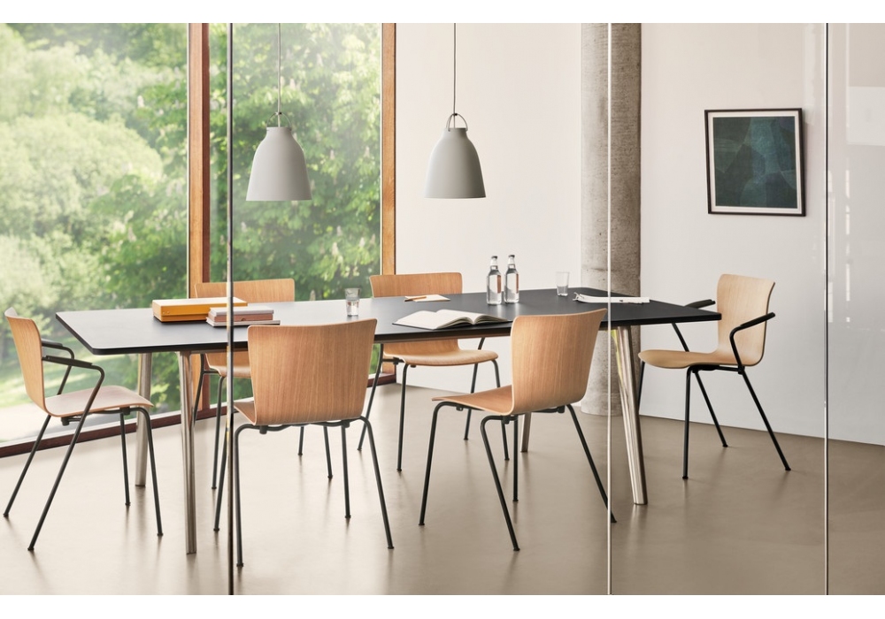 Vico Duo conçu par Vico Magistretti pour Fritz Hansen est une chaise réalisée avec un piètement à quatre pieds ou luge, chromé ou peint par poudrage noir. Assise et dossier en bois. Disponible en différentes finitions.