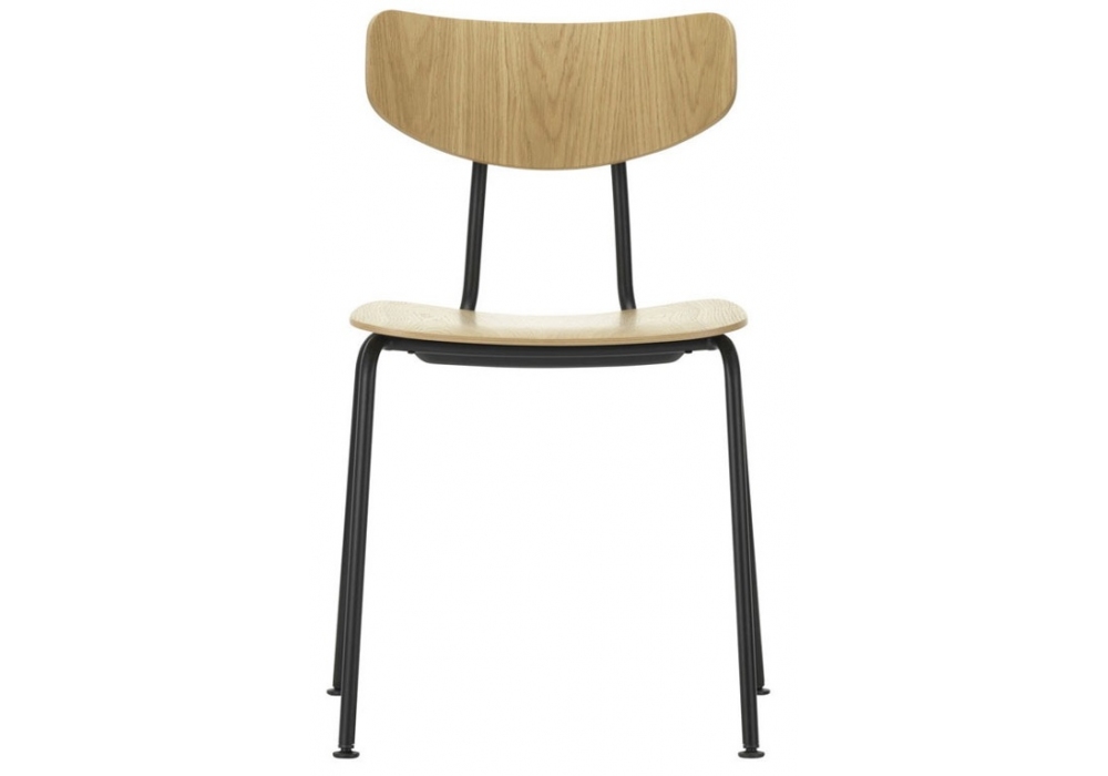 Moca conçue par Jasper Morrison pour Vitra est une chaise réalisée avec assise et dossier en bois plaqué chêne et piètement en métal. Disponible en différentes finitions.