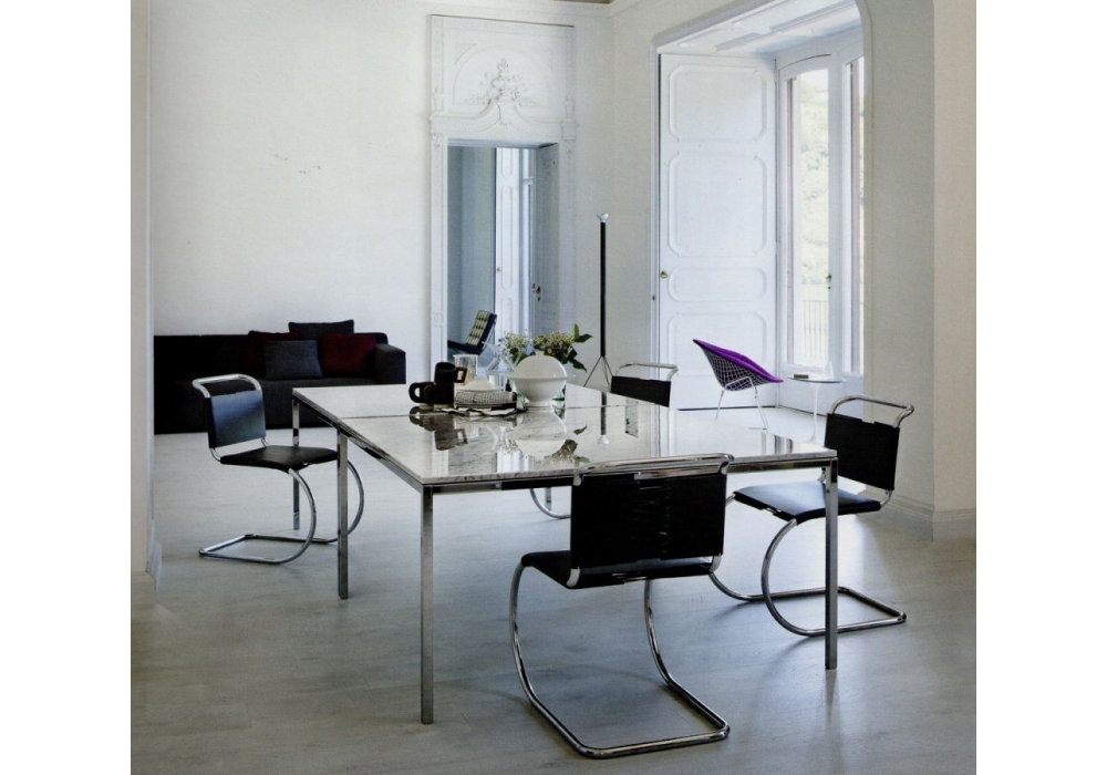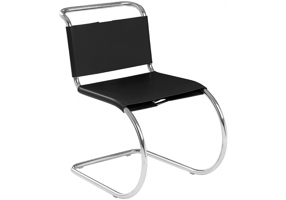 MR conçue par Ludwig Mies van der Rohe pour Knoll est une chaise avec structure tubulaire chromée polie ou avec peinture époxy ultra mate. Revêtement avec sangles en cuir avec lacets de dossier en cuir.