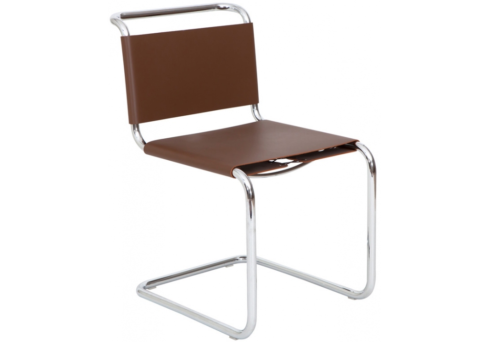 Spoleto conçu par Knoll est une chaise avec structure en acier tubulaire chromé et assise et dossier en cuir de peau disponible en différentes couleurs.