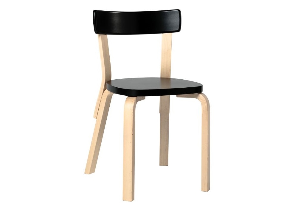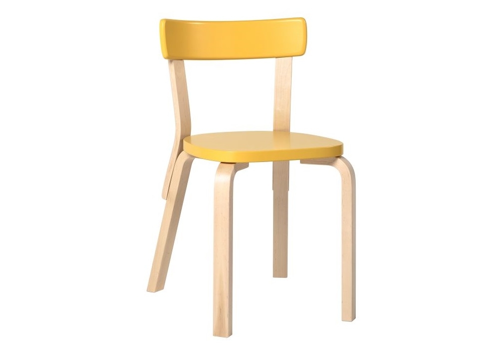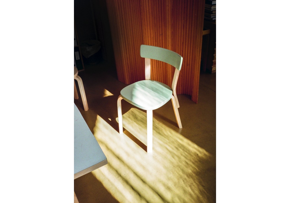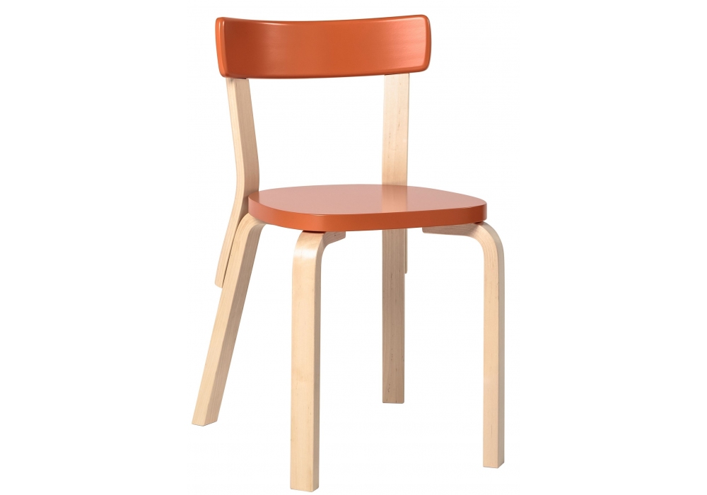Chair 69 conçue par Alvar Aalto pour Artek est une chaise réalisée avec des pieds, une bande de chant et un dossier en bouleau massif. Disponible en différentes finitions.