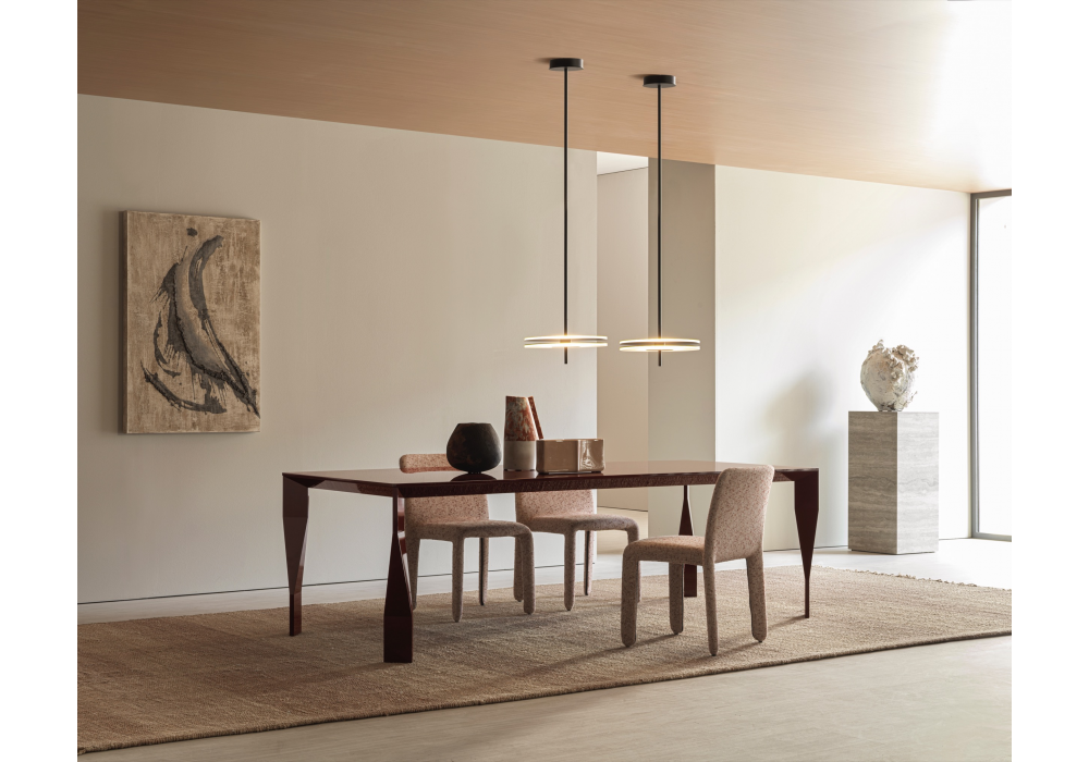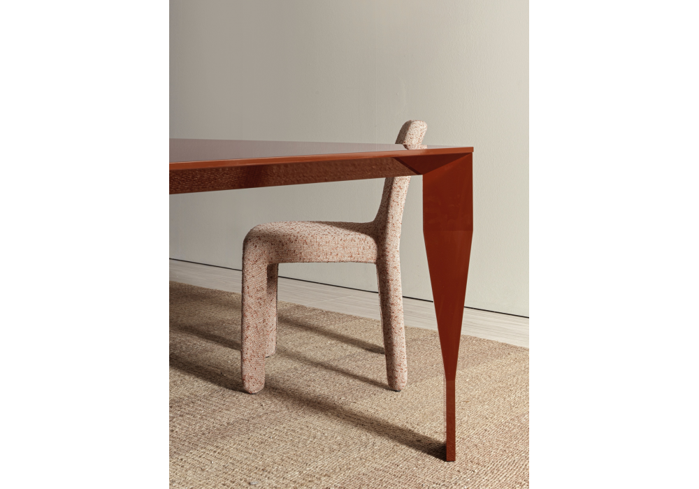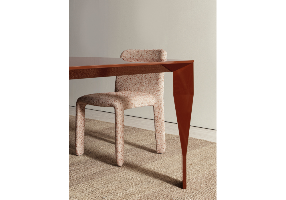 Glove Up conçue par Patricia Urquiola pour Molteni&C est une chaise aux lignes sinueuses. Le revêtement est disponible en cuir ou en tissu. La chaise est complètement démontable.