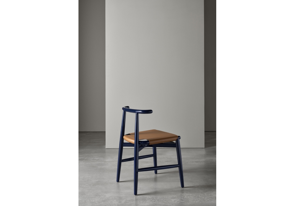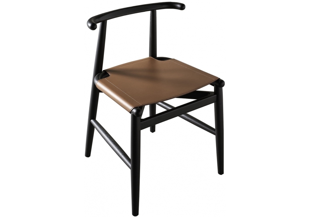 Emilia Kuoio conçue par Andrea Parisio pour Meridiani est une chaise assise avec revêtement en cuir sellier et structure en frêne massif teinté ou laqué. Embouts noirs en plastique.