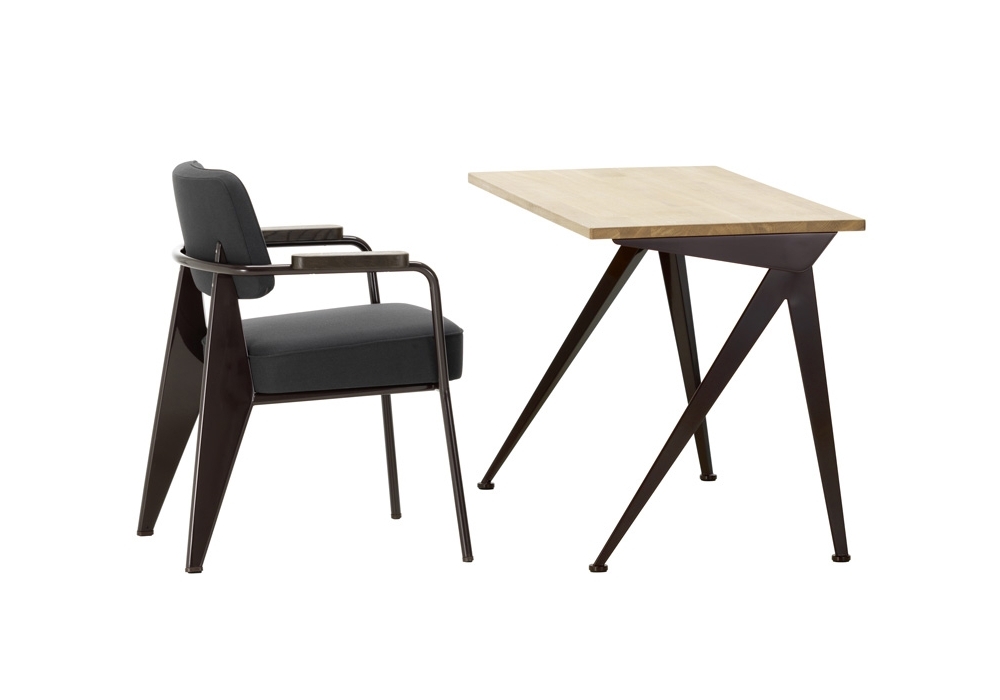 Le Fauteuil Direction est un fauteuil confortable qui permet de s'asseoir à table. Le langage de ses formes répond aux principes constructeurs typiques de Prouvé. Ce petit fauteuil convient parfaitement aux configurations Home Office, où il s'associe idéalement au petit bureau Compas Direction, mais il peut également être utilisé autour d'une table à manger. Le Fauteuil de Direction est par ailleurs du plus bel effet dans d'élégants lobbies, des restaurants gastronomiques ou des salles d'attente.