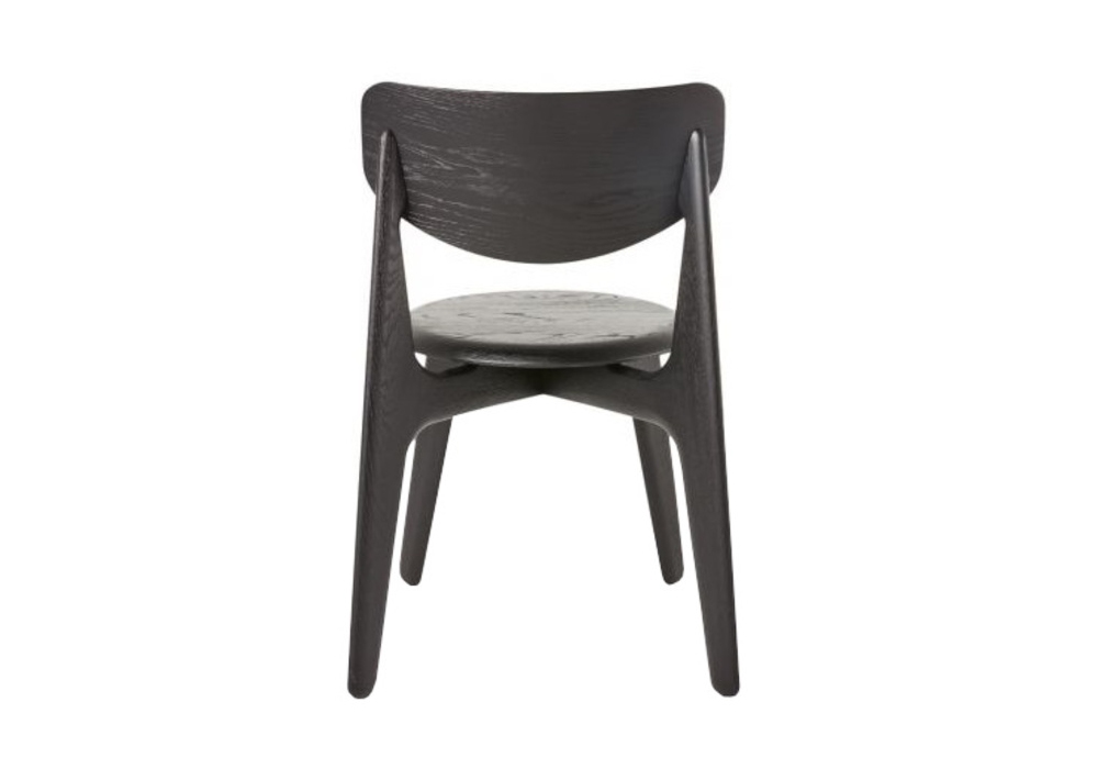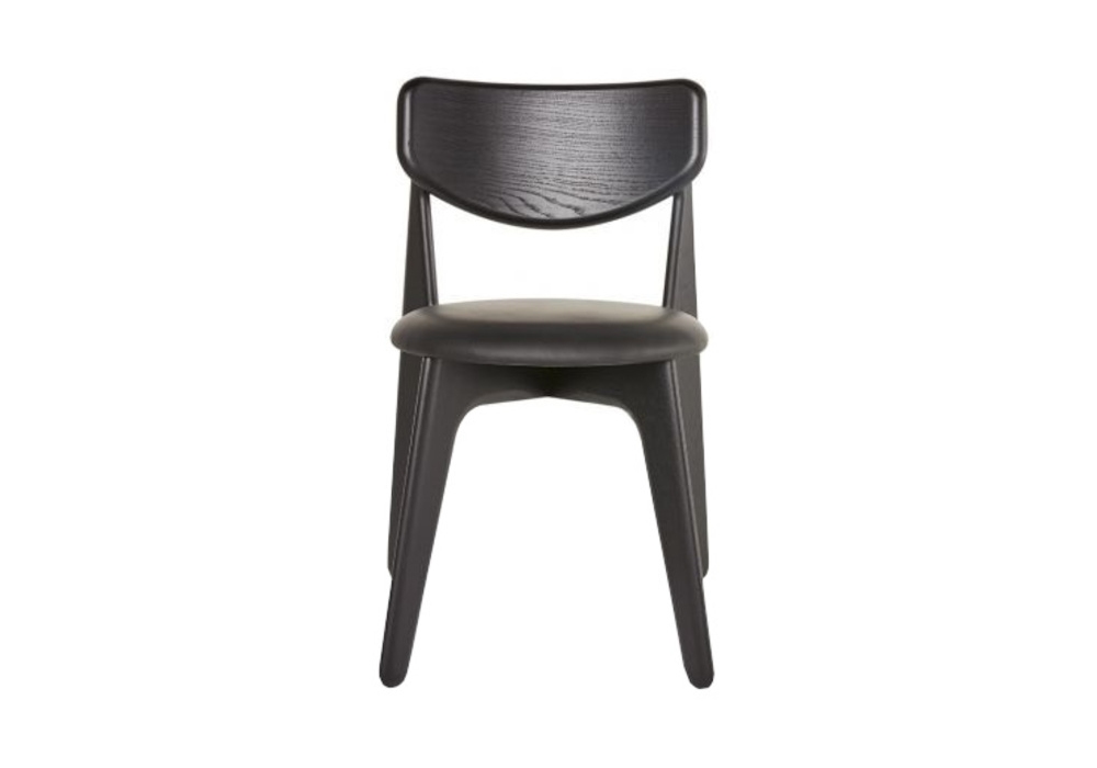 Slab Dining conçue par Tom Dixon est une chaise en bois de chêne massif en différentes finitions. La chaise est également disponible avec un siège rembourré avec revêtement en cuir noir.
