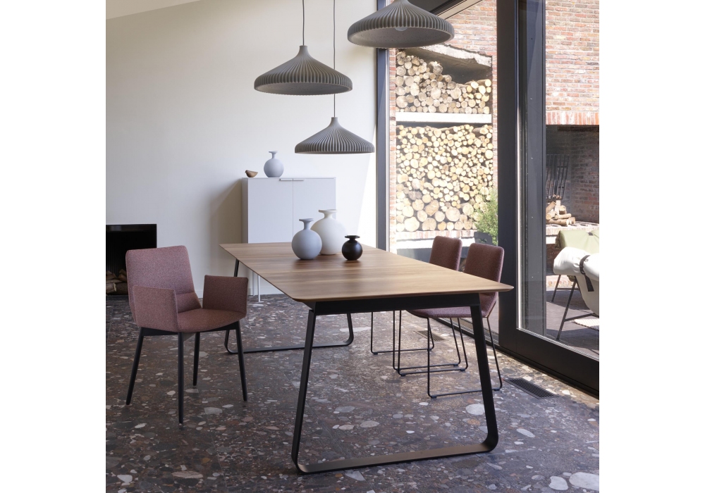 Bendchair conçue par Peter Maly pour Ligne Roset est une chaise avec accoudoirs, coque en multiplis de hêtre moulé. Rembourrage en mousse en haute résilience et polyester. Piétement en hêtre teinté (pieds tournés), ou piétement traîneau en fil métallique, Ø 11mm. Revêtement disponible en tissu ou cuir.