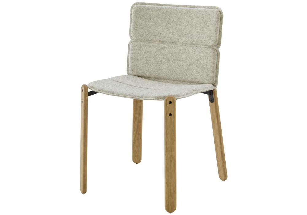 Paddock conçue par Désormeaux et Carrette pour Ligne Roset est une chaise développée comme une sorte de sandwich, à 4 pans de bois, courbés sur les bords puis recouverts de mousse et maintenus ensemble par un feutre de 2 mm d'épaisseur, il offre à la fois souplesse et rigidité. 4 pieds indépendants en chêne massif teinté. Revêtement en feutre.