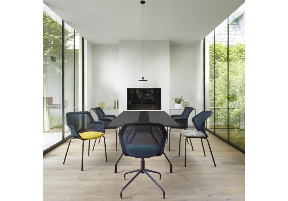 Piccione conçue par Claudio Dondoli & Marco Pocci pour Ligne Roset est une chaise avec assise rembourrée en mousse de polyuréthane et polyester. Tissu extensible en polyester tissé sur le dossier. Base en acier tubulaire. Disponible en 2 modèles: avec ou sans accoudoirs.