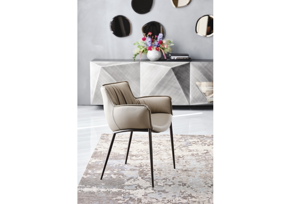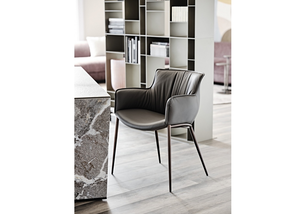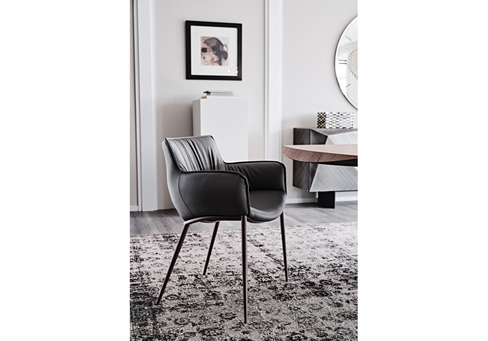 Rhonda conçue par Luca Signoretti pour Cattelan Italia est une chaise avec accoudoirs. Base en acier laqué et revêtement disponible en tissu, synthetic nubuck, micro nubuck, simili cuir ou cuir.