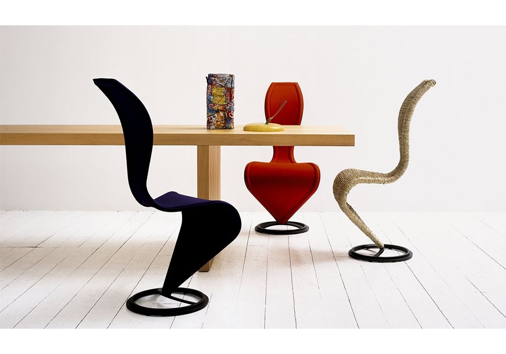 S-Chair conçue par Tom Dixon pour Cappellini est une chaise avec structure en métal et revêtement en tissu ou cuir. Disponible en différentes finitions.