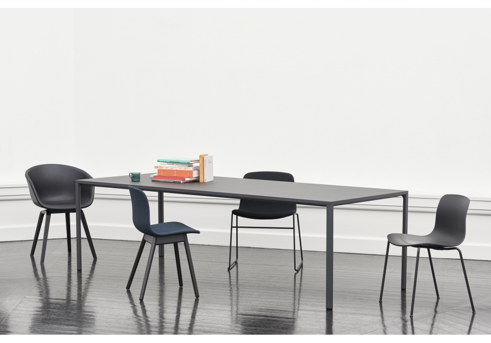 About a Chair AAC 09 conçue par Hee Welling & Hay pour Hay est une chaise avec coque en polypropylène moulé par injection entièrement rembourrée sans accoudoirs et base luge en acier massif enduit de poudre. Disponible en différents revêtements.