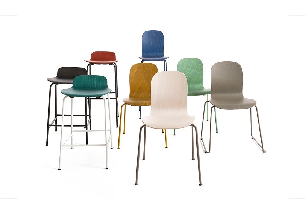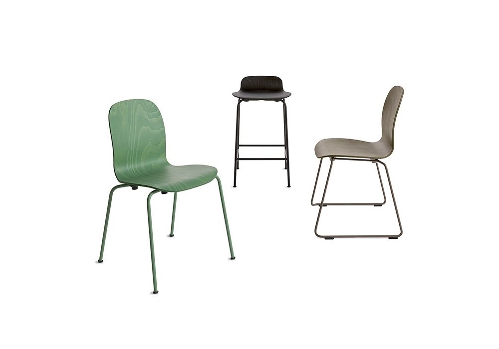 Tate Color conçue par Jasper Morrison pour Cappellini est une chaise empilable avec coque en multiplis de hêtre teinté à l'aniline et base en métal. Disponible avec piètement luge ou avec 4 pieds.