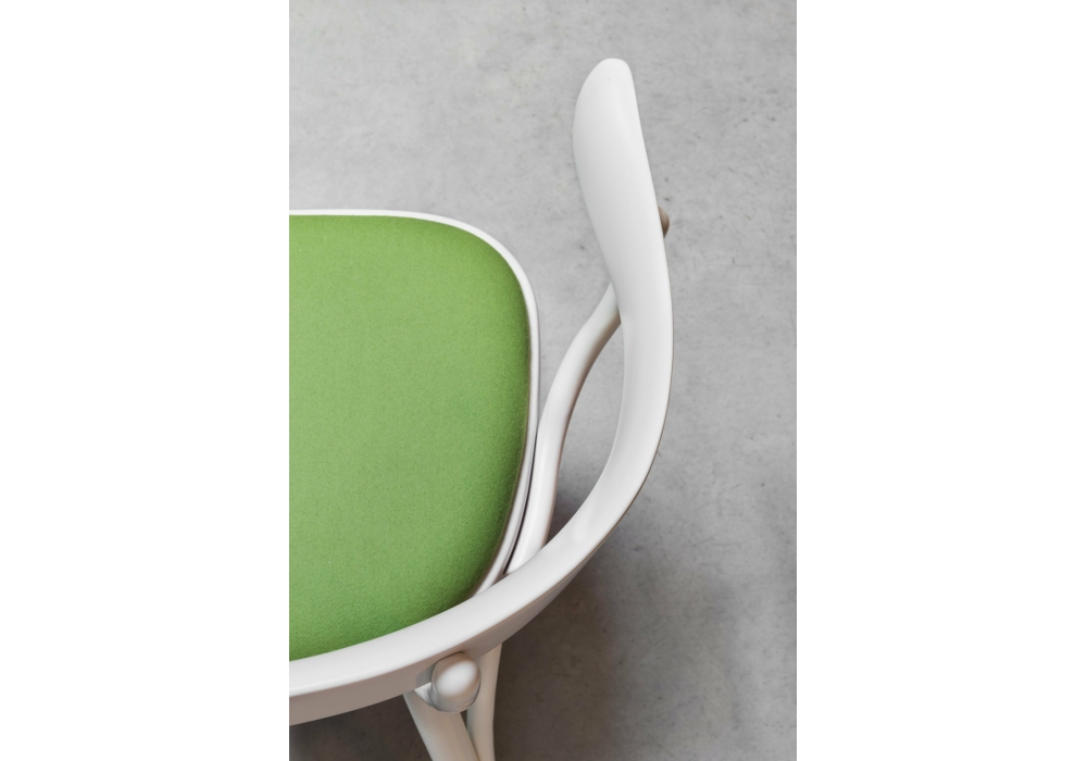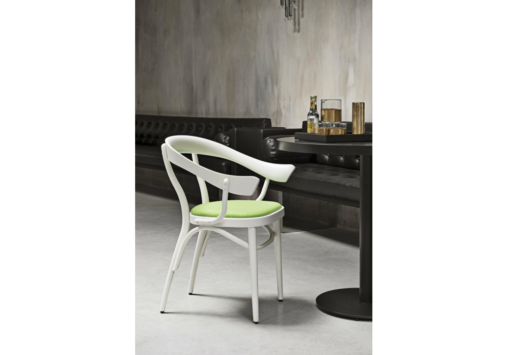 Bistrotstuhl conçue par Nigel Coates pour Gebrüder Thonet Vienna est une chaise rembourrée en hêtre courbé, assise et structure disponibles en différentes finitions.