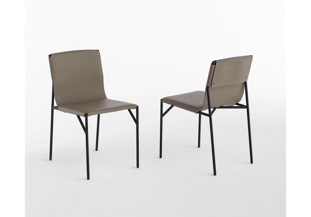 Tout le Jour conçue par Marc Thorpe pour Casamania & Horm est une chaise réalisée avec une structure portante en tube de métal peint en noir et un revêtement en cuir. Disponible en différentes finitions.
