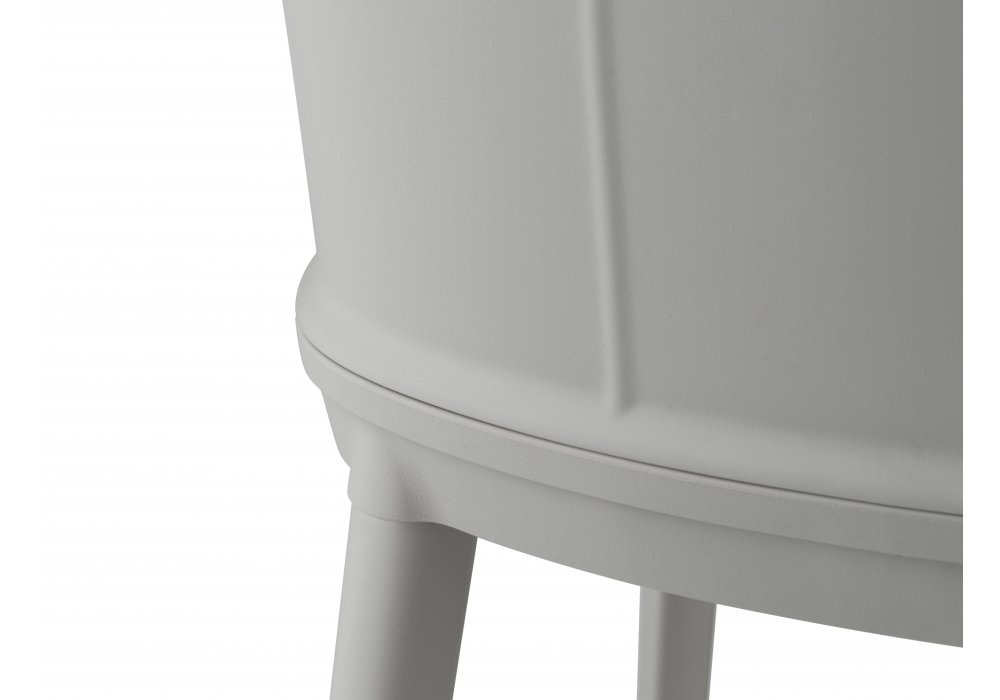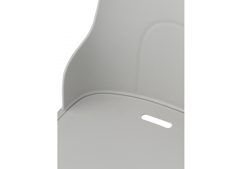 Allez, conçu par Simon Legald pour Normann Copenhagen, est une chaise entièrement structurée en matière plastique dans les finitions ; gris chaud, gris, blanc, noir ou vert parc. Allez est disponible en deux versions différentes, avec assise en matière plastique dans la même finition que la structure, ou avec assise en osier moulé de couleur ivoire.