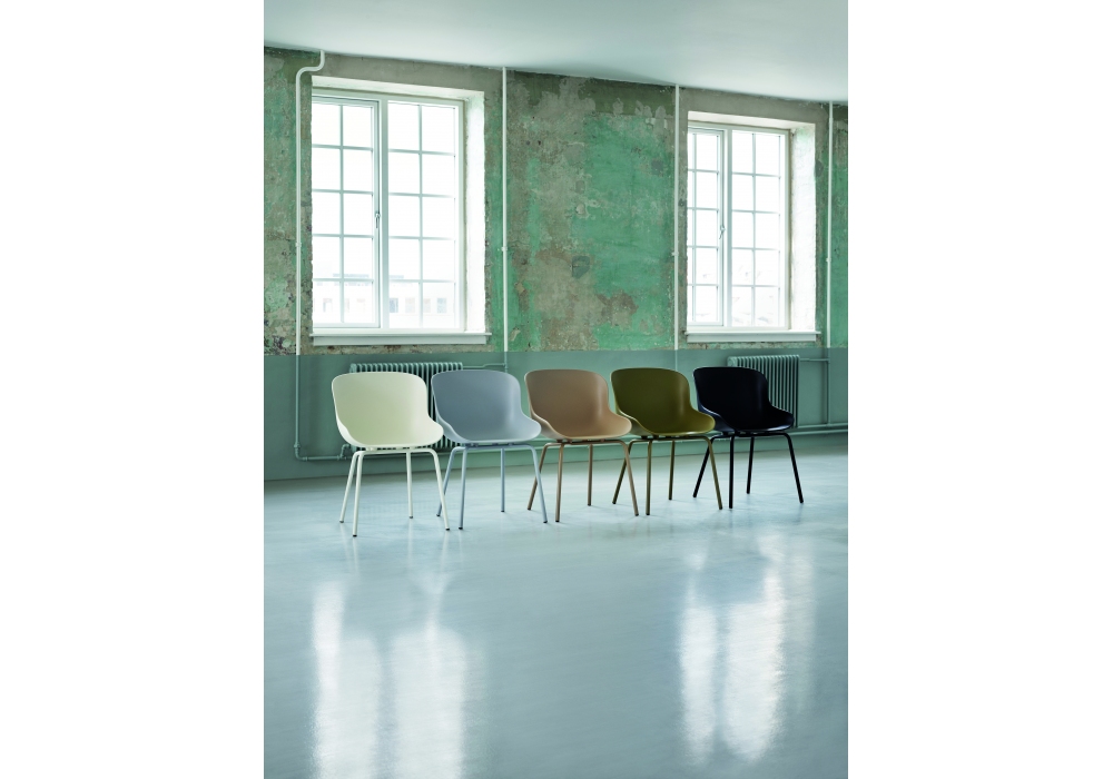 Hyg, conçue par Simon Legald pour Normann Copenhagen, est une chaise avec une coque en polypropylène et une structure portante en tube d'acier. Hyg est disponible dans les finitions ; gris, noir, blanc, sable ou olive.